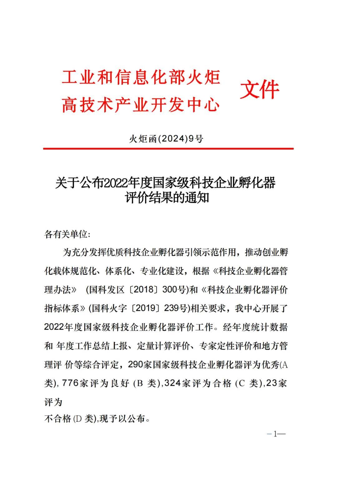 泰祥孵化器榮獲2023年度安徽省科技企業孵化器績